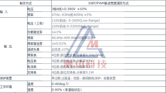 IGBT/PWM式變頻電源特征: